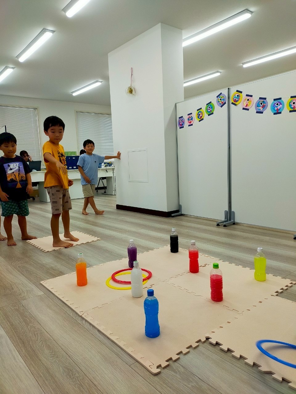 輪投げやご自分で作ってみんなを集めたヨーヨー釣りをゲームの中で行い、得点の数を大きくして合計点数の足し算を頑張ってみたり、100点をねらってみたり楽しかったり悔しかったりたくさんの感情を感じながらも最後楽しかった?と聞くと手を挙げて笑顔で過ごしてくれていたと私たちも感じることができました😊
